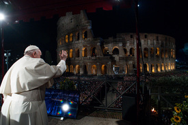 „Az a kereszténység, amely az Urat a múlt roncsai között keresi, és bezárja a megszokás sírjába, húsvét nélküli kereszténység” – mondta a pápa, aki felszólította egyházát, „félelem, mesterkedés, megalkuvás nélkül” menjen ki a világ utcáira. „Vigyük el Jézust a mindennapi életbe a béke eszközeivel a háború borzalmaitól sebzett világba (..) Jézussal az éjszaka nem marad végtelen” – mondta Ferenc pápa.
