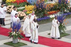 Húsvétvasárnap a pápa délelőtt 10 órakor misét vezet a Szent Péter téren, melyet Giovanni Battista Re, a bíborosi kollégiumot vezető dékán mutat be.
