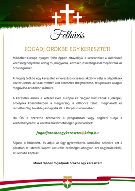 Latorcai Csaba arra biztatott mindenkit: ahogy „őseink évszázados hagyomány szerint” keresztet állítottak engesztelésül betegség, járvány vagy fegyveres konfliktus idején, úgy tegyék ezt most is, csatlakozzanak a KDNP kezdeményezéséhez, álljon minél több felújított kereszt az utak mentén, falvakban, városokban.
