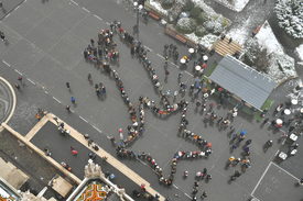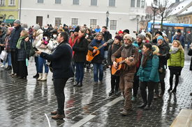 A rendezvénnyel a szervezők advent időszakában a béke fontosságára kívánják felhívni a figyelmet. A két plébánia ifjúsági zenekaraihoz több mint háromszáz fiatal csatlakozott a zenés flashmobon.