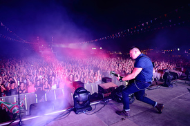 – Alapvetően a közönségtől. Lehetnek vágyaink, elképzeléseink, hogy meddig, hogyan és mit szeretnénk csinálni, de ideális esetben erről a közönség dönt. Még ideálisabb esetben pedig a színpadi ember előbb veszi észre, hogy váltani kell, mint a nézők. Az április-májusi jubileumi koncertek akusztikus hangvétele után úgy éreztük, jelentősebb formai váltásnak kell következnie. A tavaszi színházi műsor egy szál akusztikus gitárral indult, majd a második felvonásban negyvenfős kórussal kiegészített hangzásig dúsult. Ezek után a nyári fesztiválszezonra más hangvételű műsorral készültünk, ezzel tartoztunk önmagunknak, a közönségnek és a meghívóinknak is. A reakciókból eddig azt szűrtük le, hogy ez nem volt rossz döntés.