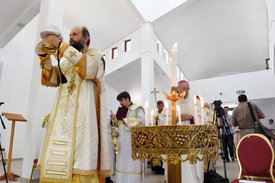 A görögkatolikus kápolna és közösségi ház felszentelése után Feczák László az ezüstmiséjét a hajdúdorogi érsek-metropolitával mutatja be.