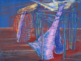 Szintén 4 millió forint a kezdőára Bak Imre Csontváry-képének. A művész 1992-1993-ban egy nagyobb és egy kisebb méretű Csontváry-képet festett, melyek közül ez utóbbi, 80×120 centiméteres alkotás szerepel az aukción. A képen jól látszik, hogy Bak nem egy konkrét festményt vagy jellegzetes motívumot emel ki a nagy mester életművéből, hanem szintetizál és absztrahál. Felhasználja ugyanakkor a Csontváry-képekről jól ismert fáradt rózsaszínt és ibolyakéket, mely utóbbi plasztikus elemként és árnyékként is funkcionál.