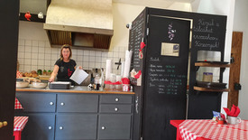 A soproni hely beltere is szívet melengetően, giccsmentesen népi jellegű, a dekoráció részét képezi a házi áldás. A berendezés a nagyszülők lócájával, kredencével, hokedlijével, mint a bemutatkozó szöveg is mondja, mára védjeggyé vált. A kiszolgálás kedves, közvetlen, udvarias, az árak barátságosnak mondhatók, a fesztiváláraknál legalábbis alacsonyabbak.