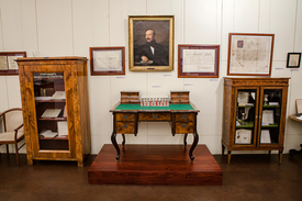 Egy kéziratokkal teli kiállítás, még ha azok valóban különleges Vörösmarty-rajzokkal díszítettek is, nem lenne teljes személyes tárgyak nélkül. Bár fennmaradt az egykori Vörösmarty-szoba tárgyainak pontos listája, ezek közül többnek nyoma veszett. A kiállítás megnyitása előtt néhány nappal azonban sikerült visszahozni Kápolnásnyékről a már említett íróasztalt, melyen a hagyomány szerint a Szózat született, illetve a Petőfi Irodalmi Múzeumból az ajándékba kapott elefántcsont sakk-készletet is. Elmondhatjuk tehát, ha kisebb-nagyobb hiányosságokkal és csak rövid időre is, de nyolcvan év elteltével, a Szózat 180. születésnapjára mégiscsak sikerült újra kinyitni az Akadémia Vörösmarty-szobáját.