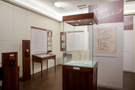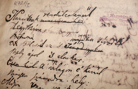 – A tárlat főszereplője és szenzációja kétségkívül a Szózat kézirata, melynek egyébként három olyan példánya van, amelyet Vörösmarty saját kezével írt, illetve másolt le. Ebből a nálunk őrzött első kettőt elődeink valamikor egybekötötték, a harmadik pedig az Országos Széchényi Könyvtárban található – mesél a kézirat történetéről Babus Antal, a kiállítás rendezője. – Vörösmartyt ugyan a pályája elején megérintette a klasszicizmus szele, végül mégis ő lett a legnagyobb romantikus költőnk, s mint ilyen, feszültséggel, intenzitással, érzelmekkel teli ember volt, ami nagyszerűen követhető a kéziratain is. Rengeteget javított, áthúzott, kihúzott, közben rajzolgatott is a papírra. Nem volt ez másként a Szózat esetében sem. Érdekesség, hogy amikor 1835-ben az első sorokat papírra vetette, feltehetően éppen egy akadémiai ülésen vett részt, hiszen függőlegesen találunk rajta olyan feljegyzéseket, melyek arra utalnak, hogy kit kellene megválasztani akadémikusnak. De láthatunk számsorokat is, melyeket pedig valószínűleg az magyaráz, hogy a költő állandó anyagi gondokkal küzdött, s itt számolgatta, hogy a háztartásban mire kell még költenie. A kiállításunk tehát abból a szempontból is újszerű és izgalmas, hogy eloszlatja azt a tévhitet, miszerint egy nagy költő mintegy varázsütésre, azonnal készre írja műveit. Éppen az ellenkezője igaz: az alkotás gyötrelmes folyamat, amelyet jól tükröznek Vörösmarty kéziratai is.