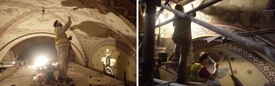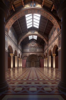 A felújítás leglátványosabb része a II. világháborúban megsérült Román Csarnok rekonstrukciója. A csaknem 900 négyzetméter alapterületű, középkori bazilika belső terét megidéző terem egyedülálló falfestményeinek megújításán mintegy 70 restaurátor dolgozott, akik csaknem 2500 négyzetméter falfelületet varázsoltak újjá. A munkálatok során 1500 liter konzerválóanyagot és csaknem 100 kilogramm, különböző színű pigmentet, valamit 5500 aranymetál-lapot, azaz 5,5 kilogramm aranyat használtak fel. Ezek mellett a múzeumi tér korszerű hűtési-fűtési, valamint modern világítási rendszert is kapott.