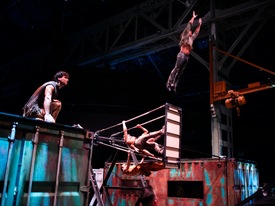 E komplex világ megalkotásában persze a cirkusz volt a főszereplő: húsz különféle zsáner látható az előadásban, köztük az oroszhinta-, szóló- és duógurtni-, kínairúd-, kötél-, rhönrad-, létra- és zsonglőrszámok vagy a hajnál fogva lógó artista produkciója és még sok olyan egyedi fejlesztésű rekvizit, mint például a Hektór produkciójában látható vasrácsszerkezet, amelynek segítségével különleges levegőszámát mutatja be az artista. A rendezőtől azt is megtudjuk, hogy az elmúlt fél év a próbákról és az építkezésről szólt, ami a show szereplőinek komoly fizikai felkészülést jelentett, emellett ráadásul a darab háttereként szolgáló ókori eposzt is alaposan meg kellett ismerniük: Vergilius Aeneise mindenki számára kötelező olvasmány volt. És nem csupán azért, hogy az artisták hitelesen tudják tolmácsolják a történetet, hanem azért is, mert az ókori mitikus anyag kollektív tudattalanunk része, kultúránk origója, így ismerni mindenki számára alapvetés.