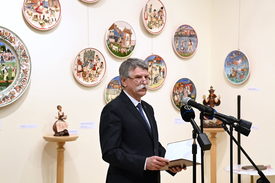 Kovács Gergelyné Szabó Irén kultúrtörténész elmondta, Józsa János a járványhelyzet alatti bezártságban nyolcvan nagy méretű kerámia dísztányért készített a legnehezebb technikával, máz alatti festéssel.