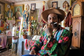 Családi házukhoz indulunk, miközben bemutatkoztunk, de amíg nem érünk oda, hiába kezdenénk komoly beszélgetésbe, Zoltánt lépten-nyomon köszöntik, megszólítják a helybéli férfiak, asszonyok. Végül megérkezünk a takaros kis házhoz. Belépünk a némely katolikus szentélyt meghazudtoló, szentek szobraival, feszületekkel, gyertyák erdejével ékesített, áhítatot sugárzó szobába, hogy elmerüljünk a jósok világában.