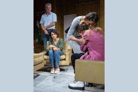 Adott egy vidéki magyar kisváros, amelynek egyetlen és állandó büszkesége a helyi pólócsapat; boldog lehet az a szülő, akinek a fia a kispadon való állandó ücsörgés helyett a medencében is lehetőséget kap. Itt él a Boros család – a kisvállalkozó apuka (László Zsolt), a tanárnő anyuka (Török-Illyés Orsolya) és egy szem fiuk, a vízilabdázó Ákos (Nagy Márk) –, a nyilvánvaló érzelmi hiányokkal együtt is nagyjából rendezett módon, az országos urambátyámvilág játékszabályait is úgy-ahogy betartva. Az „idillt” egy szombat éjjeli látogatás zavarja meg, amikor is beállít egy nyomozónő (Martin Márta), és közli, hogy Ákost és vele az egész csapatot letartóztatták, mert egy buliban bedrogoztattak (innen a cím, ami egy szintetikus kábítószer elterjedt neve), majd öntudatlan állapotában levetkőztettek és fotózni kezdtek egy kiskorú lányt. Ettől fogva nem is a jól sejthető igazság kiderítése a lényeg, hanem az a pszichológiai játszma, ahogyan az egyes szereplők kezelik az ügyet. Az előadás különösen a felnőttek felelősségére koncentrál („Ránézek és teljesen idegennek tűnik. Ijesztő, hogy fogalmam sincs, mi kavarog benne.”), nemcsak Ákos szüleinek élethazugságait kidomborítva, hanem a hozzájuk ezer szállal kapcsolódó, régi barát és edző (Schneider Zoltán a nyolcvanas évek konzerválódott prolimacsója) ingerült hatalmaskodásának okait is. Az életszerű párbeszédek, a néhol egészen árnyalatos alakítások és egy kivételesen megrázó jelenet (az áldozat és édesanyja megjelenése Boroséknál) ellenére az embernek mégis az az érzése, mintha az előzetes színészi improvizációkra felhúzott darab túl sokat akarna egyszerre mondani: korrupció, hivatallal való visszaélés, a nők lehetőségei, az élsport árnyoldalai, a metoo határán billegő, szexista viccek vagy a pornó létjogosultsága, bűn és bűnhődés – a rengeteg felvetett probléma szükségszerűen a mélység rovására megy. Arra azonban mindenképpen jó alkalmat ad a Gina, hogy feltegyük magunknak a kérdést, ha mi ilyenek vagyunk, mégis, mit várunk, milyenek legyenek a gyerekeink?
