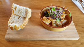 Rendeltünk fokhagymás chilis rákot füstölt paprikával (2500 Ft), serpenyős lazacot citromos vajmártással, brokkolival, sárgarépával és csicsókával (3800 Ft), valamint csokitortácskát tonkababbal és kávéfagylattal (1500 Ft). Ételeink kifogástalanok voltak, ízre-állagra egyaránt kiválóak, harmonikusak, látványra is megnyerők.