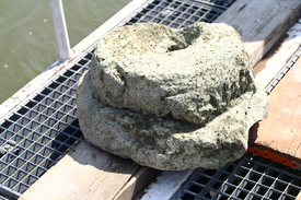 A sodrás és a néhány arasznyi látótávolság ellenére már a víz alatt részletrajzok készültek az objektumról – a vízben ceruzát és műanyag lapokat használnak a célra –, ezeken is láthatóvá vált, hogy a mederre épített, fából és kőből készült építményről van szó: a belsejét keresztgerendák merevítik, a favázba pedig kvadrátokat, vagyis faragott építőköveket szórtak.