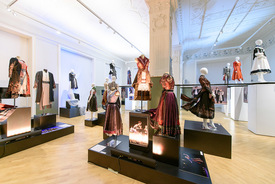 A Kallós Zoltán-kiállítótér tágas helyiségébe lépve egyszerre nyűgözi le a látogatót az anyag elrendezésének játékossága – mintha a színpadi kulissza titokzatos világába csöppennénk – és a tervek sokszínűsége. És bár a zene, a tánc, a kosztümök, a díszlet egymást erősítve, egyszerre érvényesülnek a színpadi térben, a jelmezek e közegből kiragadva egy cseppet sem veszítenek varázsukból. Minden egyes darab külön világ, amely mesél a tervező fantáziájáról, ahogyan egy autentikus formát újragondolva jelentéstöbblettel ruház fel, és persze arról, ami talán a leggyorsabban ér el a nézelődő szívéhez: a szépségről.