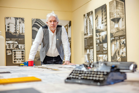– Eredetileg a hatvanéves születésnapomra tervezett életmű-kiállítás lett volna, de időközben rájöttünk, hogy a családunk helyzete annyira speciális, különleges, életútjaik annyira egymásba fonódók, hogy nem hagyhatjuk figyelmen kívül ezt a százéves építészeti „ívet” sem – meséli Vadász Bence. – Nagypapa 1900-ban született, 1924–1925-ben, tehát éppen száz évvel ezelőtt végezte el az egyetemet. Vele és a Bauhausszal indult a történetünk, majd ment át az apám szertelen, de imádni való építészetébe. Utána jöttem én, az útkereső, kalandozó építész, most pedig Balázs kapcsolódik a sorba. A száz tabló között – időrendben – a kicsit megbarnított, régi dagerrotípia-szerűek nagypapa érdekes házait és színes ceruzarajzait mutatják be, utána következnek apám fekete-fehér tablókra kasírozott épületei és grafikái mint a közelmúlt emlékei, végül velem és munkáimmal érünk el a jelenkori építészetünkhöz és íme, kiszínesedik a kép…
