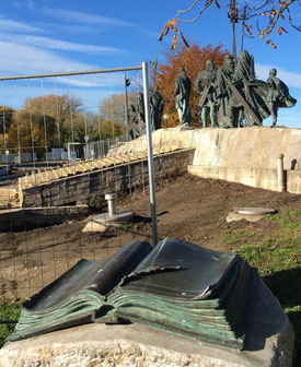 A bronzba öntött figurák váratlanul bukkannak elő a Duna-parti sétányon. Az emlékművet egyéb körülmények között nemcsak a folyó felől, hanem a túloldalán elterülő térről is meg lehetne csodálni, hiszen a szoborcsoport alakjai épp a két területet elválasztó alacsony kőfalon magasodnak, ám a Nibelungenplatzot jelenleg átalakítják, úgy kell megkérnünk a munkásokat, hogy néhány fotó erejéig engedjenek be minket az építési területre. Tullnban járunk, Ausztria egyik legrégebbi városában. A 19 ezer lakosú település Bécs agglomerációjának része, mintegy 40 kilométerre az osztrák fővárostól, és mint ilyennek, lélekszáma folyamatosan nő.