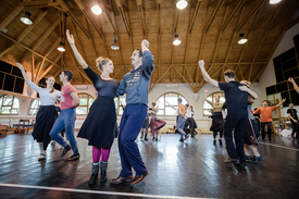 Elképesztő energiákat mozgósítanak a néptáncosok próba közben, szinte szikrázik körülöttük a levegő. A próbaterem intim közelségében jól látszik az arcokon, mennyire összpontosítanak, miközben teljes odaadással vetik bele magukat a táncba: az eksztázis és a profizmus nem zárják ki egymást, a táncosok szemmel láthatóan rendkívül élvezik a munkájukat. A Magyar Nemzeti Táncegyüttes délutáni próbáján vagyunk, Zsuráfszky Zoltán társulata éppen a Betyárvilág című táncjáték jeleneteit eleveníti fel a közelgő előadásra, miközben párhuzamosan próbálják a Honvéd Együttes hetvenéves fennállásának jubileumi elő­adására az emblematikus koreográfiáikat is. Zsuráfszky Zoltán gyors eligazítást tart: még több energiát és lelkesedést vár el csapatától. A maximalizmus itt alapvető – talán ez az egyik kulcsa a társulat sikerének, és persze annak, hogy az egyik legnagyobb múltú hazai néptáncegyüttesként nemcsak a hagyományok ápolása, hanem a megújulás és az elmélyült alkotómunka is fémjelzi munkásságukat.