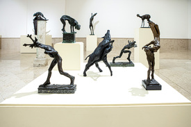– A tárlaton szereplő műveket nagyon erőteljes figurativitás, természetelvű látásmód teszi egységessé, melyek fő tárgya csaknem minden esetben az emberalak, illetve az utóbbi alkotóperiódusokban nagyon hangsúlyosan a különböző állatok, illetve a különböző természeti alakzatok, természeti elemek megidézése, az ezekkel való formai játék, párbeszéd – mesél a Vigadóban látható jubileumi kiállításról a kurátor, Wehner Tibor művészettörténész, aki többek között a Magyar Nemzeti Galériától, a szentendrei Ferenczy Múzeumi Centrumtól, a Kovács Gábor Művészeti Alapítványtól, a Kogart Kortárs Művészeti Intézménytől kért kölcsön műtárgyakat.