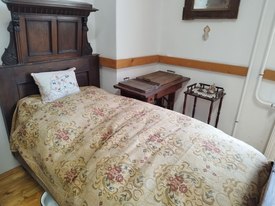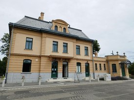 Az emeleten az egykori állomásfőnöki szolgálati lakás látható az eredetinek megfelelő járólapokkal, csempékkel, mosdókkal, parkettával. A fal egy részén meghagyták a restaurált eredeti díszítést. Az egyik vitrinben a Magyar Királyi Államvasutak közkedvelt 424-es szerkocsis gőzmozdonyának 1935-ben épített, 1:5 méretarányú modellje is látható.