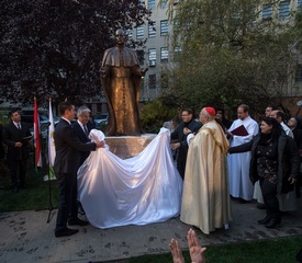 Mindszenty József egészalakos bronz szobrát, Hermann Zsolt szobrászművész alkotását Erdő Péter bíboros, prímás, esztergom-budapesti érsek áldotta meg.