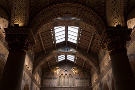 A közlemény szerint a mintegy 900 négyzetméter alapterületű középkori bazilika belső terét megidéző terem egyedülálló falfestményeinek megújításán majdnem hetven restaurátor dolgozott, 2500 négyzetméter falfelületet alkotott újjá.