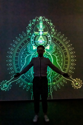 És valóban. A Cinema Mystica alkotásaiban a vallásos misztérium és a tudomány-technika keveredik. A látogatónak pedig nincs különösebb dolga, mint eggyé válni ezzel a 16 különleges világgal, beléjük simulni, és az 1400 négyzetméteres kiállítótérben sétálgatva egyszerűen elfelejtkezni a külvilágról.
