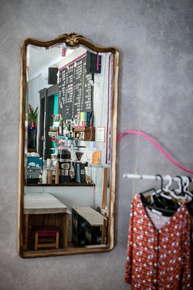 Az üzlethelyiségben a tárgyak mind kalandos metamorfózison estek át: az egyik asztal egy jókora, leüvegezett és lábakra állított ajtószárnyból készült, egy aprócska fiók falipolcként működik, a gyümölcstároló ládák pedig színesre festve, élére állítva találták meg új feladatukat. Mindehhez tökéletesen illik Timi, a tulajdonos házaspár hölgytagjának megjelenése szivárványszínű hajával és mindig széles mosolyával. Spanyol, könyvtáros férjével és két gyerekével Sanghajban éltek évekig, de már az első randijukon beszélgettek egy közös kávézóról: ezt végül itthon sikerült megvalósítani, Timi baristának tanult, a férje pedig a La Nube szakácsa lett.