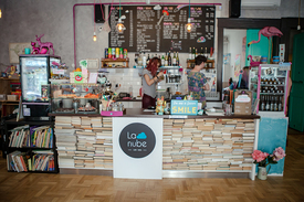 A La Nube amolyan elvarázsolt sziget a betontengerben: a Bartók Béla úthoz közel eső kis kávézó illeszkedik ahhoz a fiatalos stílushoz, ami egy ideje jellemzi a környéket. A kávézó ajtajában unikornis fogad, alapvetően meghatározva a hely szellemiségét: a tapinthatóan bohém hangulat valahol messze, a felhők között jár – talán innen a névválasztás, a la nube ugyanis spanyolul felhőt jelent.