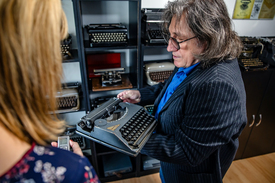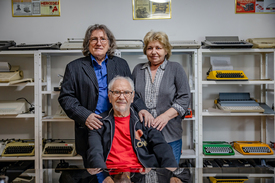 – Ma már olyan, mintha az előző életemben használtam volna ezeket írógépet, pedig szerettem velük dolgozni, hosszú éveken, évtizedeken keresztül pötyögtem rajtuk a könyveimet. De ha most arra kérnétek, hogy írjak valamit, nem találnám a betűket. Átszoktam a számítógépre. Egyfelől rossz élmény, hogy egy olyan gép előtt ülök, ami sokkal okosabb, mint én, rendszeresen beleszól az életembe, visszabeszél, másfelől nagy segítség is, hiszen jelzi, ha hibázok a szövegírás közben – mondja Müller Péter, aki épp látogatóba érkezett Garami Gézához, akihez több évtizedes barátság fűzi. Rendszeresen bejár a műhelybe, az írógépek között otthon érzi magát. És nosztalgikusan idézi fel azokat az írógép előtti időket, amikor az irodalomtörténet nagy klasszikusait még kézzel, tintával írták. Példaként említi Tolsztojt és feleségét, Szofja Andrejevnát, aki hétszer másolta le teljes egészében a Háború és békét.