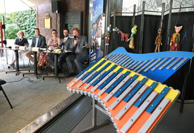 Szentirmai-Zöld Máté, a Millenáris Park projektigazgatója elmondta, hogy a felújított Fogadó épületben lesz látható A fából faragott királyfi július 2-án, 9-én és 21-én, a Széllkapu parkban pedig minden vasárnap közösségi hangszerek kiállítása és interaktív térzene lesz gyerekeknek.