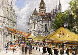Jól tette. Ez az az (amúgy ritka) eset, amikor egy társadalmi-politikai esemény és egy művészeti program szerves egységbe kerül. A festő évek óta szinte megszállottan járja a Kárpát-medence magyar településeit (is), és azokról oldott, építészeti karaktert is mindig viselő, ugyanakkor friss festőiséget is magukon hordozó városképeket fest. Ezúttal Kassa kerül a központba, melynek fantasztikus főtere szinte képsorozatra ihlette, és melyben természetesen „főszerephez” jut a dóm. A dóm, ahol Rákóczi márványkoporsójának Pro libertate felirata Márai Sándort mindig arra a szabadságra emlékeztette, „amelyért talán érdemes élni”. Forster Jakab képei Kassáról indulva, Pozsonyon keresztül elvezetnek Erdélybe, és a magyar királyi városokba, Esztergomba, Székesfehérvárra, majd Tihanyba. Friss vizuális kalandozása a határok nélküli összetartozást fejezi ki. A szabadság jegyében.