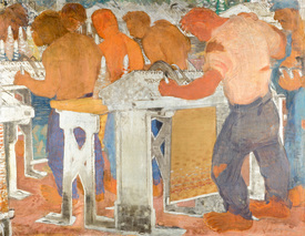 Szintén kivételes csúcsot képvisel Egry József életművében a Csontváry által halhatatlanná tett Taorminát megörökítő-festmény, a most aukcióra kerülő Taorminai napkelte (1930), illetve a modern magyar festészet ünnepelt ikonjának, Derkovits Gyulának 1933-ban festett Szövők című alkotása, melyen a modernista gépkorszak heroizmusa jelenik meg, rímelve a filmművészet korabeli klasszikusaira.