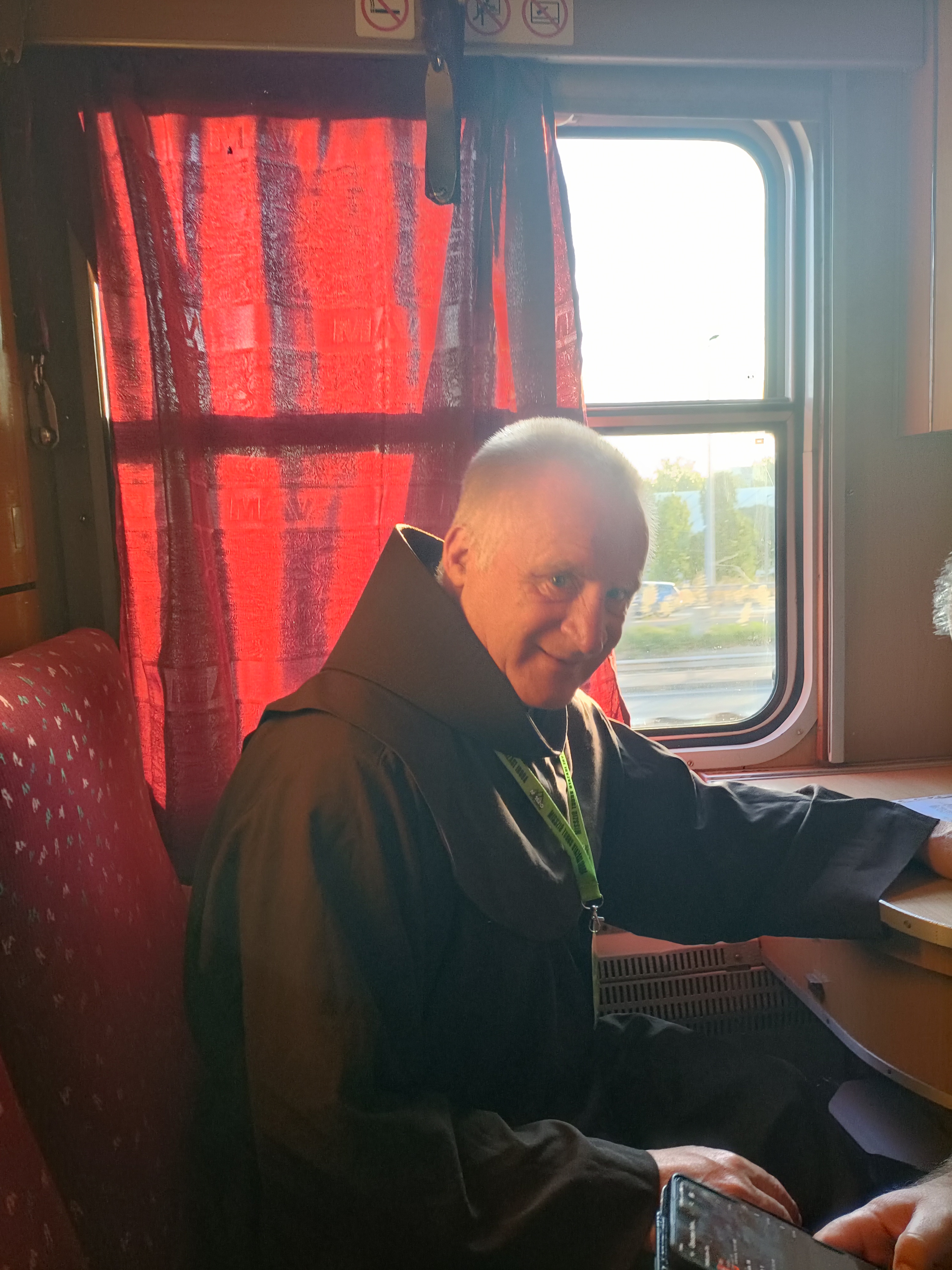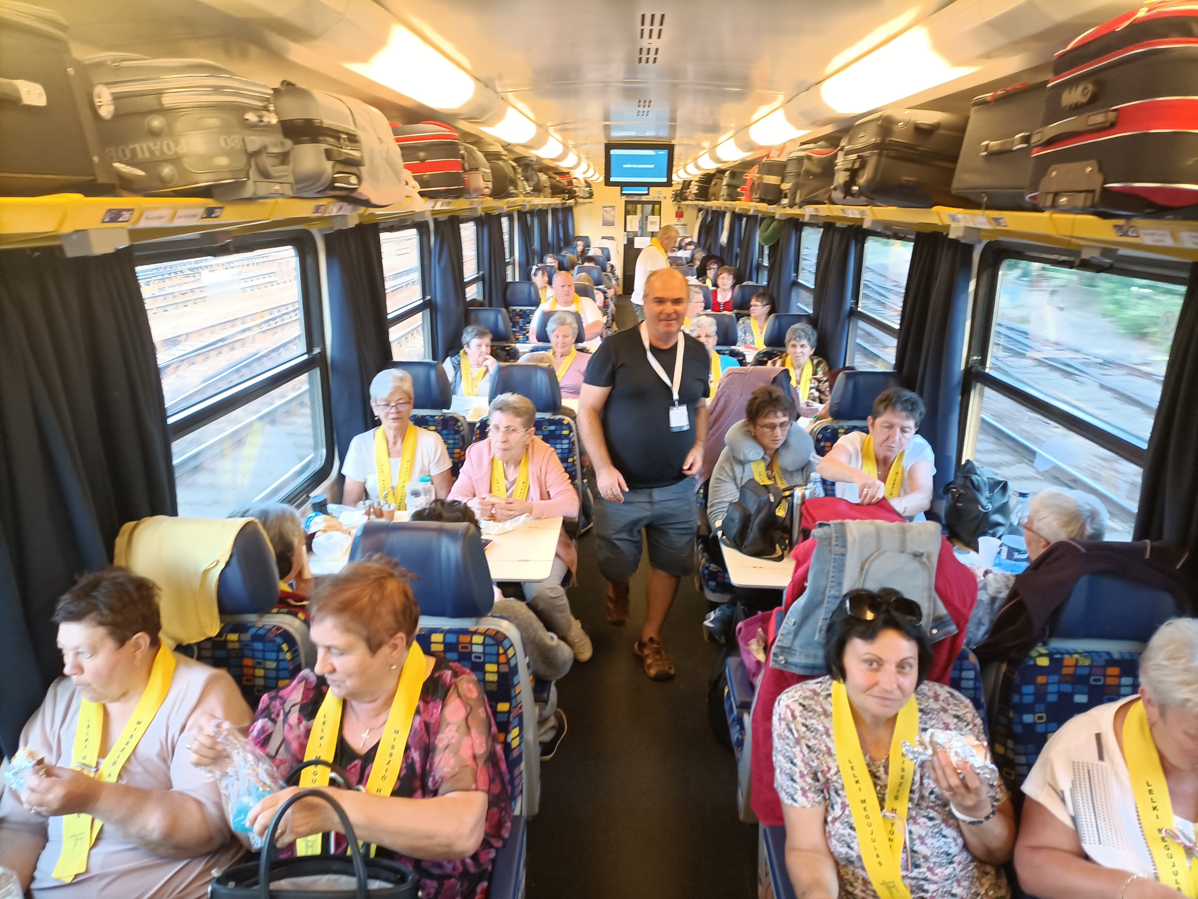 Petrás Mária Kossuth-díjas magyar népdalénekes, keramikussal tartottunk a Lengyelországba tartó IX. Fekete Madonna Zarándokvonaton.