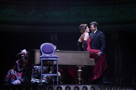 Apropó frivolság: ha valami, akkor a prüdéria aztán tényleg távol áll ettől a világtól, jó példa erre a Barrison lányok sikamlós számának sikere, akik ugyancsak valós szereplői voltak Somossy egykori Orfeumának. És mindezek mellett vagy éppen ennek ürügyén Az Orfeum mágusa a művészet örökkévalóságáról is mesél, színpadán ott nyüzsögnek a művészetet jelképező bohócok, komédiások, a commedia dell’arte figurái, és ott festeget a párizsi festőművész, az orfeum miliőjét olyannyira kedvelő Henri de Toulouse-Lautrec is, míg Boros Misi zongoraművész alakításában még a halhatatlan zeneszerző alakja is felbukkan, zongorán játszva egy-egy ismerős melódiát, a finálé előtt pedig bemutatkozik: Kálmán Imre.