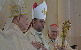 „Szívből kívánom, hogy érseki szolgálatodat vezesse Márton Áron püspök példája, és segítse a Boldogságos Szűz Máriának, Magyarok Nagyasszonyának, Szent Mihály főangyalnak és egész Közép-Kelet Európa minden szentjének közbenjáró támogatása” – fogalmazott a bíboros.