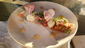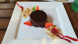 Éppen ezért sem volt könnyű választani, vonzott az egészben sült malaccsülök, a sertéspofa, a rozé kacsamell és a nyúlgerinc is, végül mégis a Balaton közelsége és a halszeretet győzött. Kértünk egy tányér halászlevet, ez harcsából, szegediesen készült, a sűrű, durvára passzírozott lében jó állagú harcsa pihent tisztes, nem kiugró fogásként. Dicsérendő viszont a hozzá adott kenyér bőven a konfekcióminőség fölött, és hogy nemcsak Erős Pista, hanem frissen szelt hegyes erős paprika is járt az ételhez. Rendeltünk még füstölt tapolcai pisztrángot marinált sültpaprika-salátával, retekkel és mangómajonézzel, ez szépen tálalt, élményszerű, jól elképzelt tányérként érkezett. Zárásként tejkaramellás csokidesszertet ettünk, a pazar állagú ízbombának az északi parton eddig nem akadt párja. Mindezek alapján bátran állítható: a Vígmolnár a régió egyik legjobb étterme.