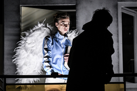 A jelenetek nagy részében a legtöbb helyiségben ül, áll, fekszik, tesz-vesz, várakozik egy vagy több szereplő, nemegyszer a félhomályban vagy a teljes sötétségben. Hegymegi Máté rendező meggyőzően érzékelteti: bár Raszkolnyikov igyekszik kiszakadni e környezetből, nem jár sikerrel. Az előadás e vonulata tehát a közösségiből a magányos létbe való áttérés esélyeit is vizsgálja – e két létforma egymásba való billegését látjuk a színpadon.