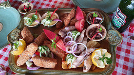 Rendeltünk még egy ízletesnek bizonyult pacallevest és szegedi halászlevet. A friss ízhatású lébe kitűnő állagú, a szomszéd településen, Nagyiratoson tenyésztett afrikai harcsadarabok kerültek. Főételnek rántott sertéskörmöt, rántott és serpenyőben sült harcsát kértünk, amit egy közös vegyes tálon szolgáltak fel hármunknak, házi majonézzel, sült krumplival és hagymalekvárral. Zárásként somlói galuskát kértünk, amely szaftos volt, ízletes, kellően diós, érdekes módon itt tejszínhab nélkül szolgálják fel.