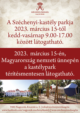 A kastély megnyitásáig a március 15-én nyíló angolpark várja a látogatókat, ahol a szemet gyönyörködtető természeti kincsek mellett Széchenyi Istvánhoz kötődő tematikus játszótér kínál tartalmas kikapcsolódást. A játszótér elemein ugyanis megjelenik a Lánchíd, a lovaglás és a selyemhernyó-tenyésztés is – természetesen mászókák, hinták és csúszda formájában.