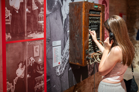 Perényi Roland történész, a Kiscelli Múzeum igazgatója elmondja, a tárlaton számos interaktív elemet – a látványtervező, Szepessy András ötleteit – alkalmaztak. A régi telefonok némelyikét használni is lehet, a látogatók felhívhatják egymást a múzeumi tér különböző pontjairól, hallgathatnak XX. századi slágereket egy régi telefonközpont-készüléken, sőt, használhatnak akár morzejelfordítót is.