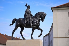 Talapzatára került Szent László király lovasszobra a nagyváradi várban