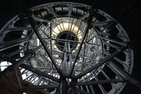 A problémát úgy hidalták át, hogy egy sajátos technikai megoldást alkalmaztak. Tavaly novemberben megépítettek lent, a földön egy négyzet alakú teherhordó acélvázat, amit felcsörlőztek a kupola párkányáig. Ott rögzítették négy ablaknyílásban, és az így létrejött plató fölé telepítették a belső állványt, így most 80 tonnányi acél és alumínium van a fejünk fölött, ahol nyár óta a stukkókat restaurálják.