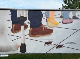 Egy másik alkotáson két csótány beszélget a kórházban a betegek lábainál. Az egyikük azt mondja, „siessünk, a többiek már várnak a műtőben”. Ez egyértelmű utalás Kulja András korábbi állítására, miszerint a Péterfy Sándor utcai kórházban csótányokat láttak. Az intézmény ezt határozottan visszautasította és büntetőfeljelentést tett a Tisza egészségpolitikusa ellen rágalmazás és rémhírterjesztés miatt.