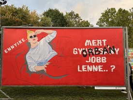 A Magyar Péter-témájú plakátok közül csupán kettő viszonyul kritikusan az ellenzéki pártvezérhez. Az egyik Magyar Péter fideszes múltjára utal kommentár nélkül, a másik a Tisza-vezért nyugágyon napozva ábrázolja, a háttérben átírva a jól ismert kérdést: „Mert Gyurcsány jobb lenne?” helyett a kérdés a következő: „Mert Orbán jobb lenne?” – utalva ezzel arra, hogy az Orbán-kormánnyal kritikus szavazók cseberből vederbe esnének, ha a Tisza nyerné a választást. A plakát alkotója azonban nem bízta a véletlenre. Talán a jól ismert tiszás gyűlölködéstől tartva a következő címet adta a rajzának: „Rád szavazok, Péter, de ne legyél az új Orbán!”, azaz kritikussága ellenére is a Tisza Pártra szavazást propagálja.