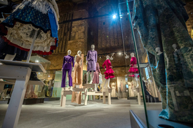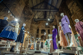 A Kiscelli Múzeum kiállítótere az egykori barokk romtemplomban kapott helyet: a puritán téglafalak, a hatalmas, boltíves mennyezet rusztikus, ugyanakkor valamiképp kortalan hátteret kölcsönöz a színpompás kiállításnak. A nem éppen szokványos kiállítótérhez hűen pedig nem csupán időrendi sorrendben, hanem nagyobb témák köré csoportosítva vonul fel a jelentős mennyiségű és rendkívül változatos tárgyi anyag – a kurátor dr. Szatmári Judit Anna divattörténész, muzeológus –, számos izgalmas témakörön keresztül, árnyalva mindazt, amit a látogató tud vagy tudni vél a divatról.
