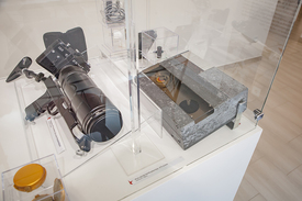 A tárlaton a technikai eszközök is láthatók, például kulcslenyomat-készítéshez használható úgynevezett pogácsa, fényképezőgépek vagy a korabeli szovjet csúcstechnológiának számító jellegzetes lehallgatókészülékek. Sőt, videofilmet is összeállítottak az ügynökök számára, hogyan kell a testen elhelyezett mikrofonokat működtetni, miniatűr poloskát a tárgyakba rejteni, vagy éppen a szállodai szobákban hangfelvételt, fotókat készíteni.
