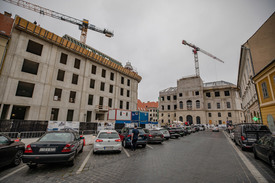Aki mostanában járt a Dísz téren, szinte rá sem ismer a környékre. Hatalmas daruk mindenütt, folyamatosan dolgoznak az építkezéseken. A Vöröskereszt Egylet bérpalotájának tavaly kezdődött újjáépítése áprilisban elérte legmagasabb pontját, ekkor került fel a kupolaszerkezet az épület sarkára. A rekonstrukció a díszes homlokzattal és a tetőhéjazattal, de hamarosan elkezdődnek a belsőépítészeti munkák, illetve a díszterem és a díszbejárat Hauszmann kori helyreállítása is.