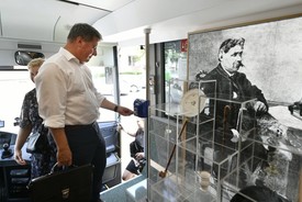 Útjára indították a Petőfi Irodalmi Múzeum Arany János mozgókiállítását, az Arany-buszt.Útjára indították a Petőfi Irodalmi Múzeum (PIM) Arany János mozgókiállítását, az Arany-buszt.