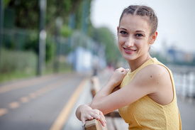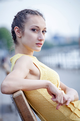 – Ez a szóló pontosan az ellentéte annak, amit a karakterformálásról mondtam. Balanchine darabja ugyanis egy báltermi közegben jelenik meg, nincs cselekmény, csupán a tánc a maga szépségében és virtuozitásában, a koreográfia tökéletesen követi a zene történéseit. Annyi könnyebbség volt számomra ebben az egyébként rendkívül nehéz előadásban, hogy a táncművészeti főiskolán már készültem a női szóló egyik részletével a háziversenyre, így az nem volt számomra teljesen idegen. Nagyon sokat fejlődtem ettől a szereptől. A premier előtt eljött Amerikából John Clifford, a darab betanító balettmestere, akitől rengeteget tanultunk. A Balanchine-technika egészen más, mint az orosz Vaganova-módszer, ami egyébként a klasszikus balettoktatás alapja Magyarországon. A Téma és variációk a lent hangsúlyos lépésekkel, a rendkívül gyors lábtechnikával sokkal inkább a virtuozitást helyezi előtérbe. A premier előtt nagyon izgultam, mivel azonban éreztem, hogy Aradi Mária mesternő száz százalékig megbízik bennem, ez komoly húzóerőt jelentett. Hetekig izgultam, hogyan sikerül majd, mikor pedig ott álltunk a függöny mögött, meglepődtem, hogy mennyire nyugodt vagyok. Ez a nyugalom pedig az előadás végéig megmaradt.