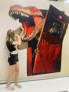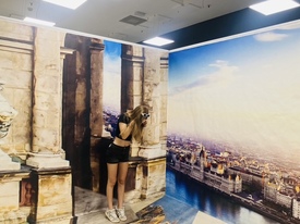 Merthogy itt a képek életre kelnek, és hagyják, hogy részesévé váljunk a világuknak. Voltaképpen optikai illúziók, így az egész galéria olyan, mint egy vizuális játszótér, ahol egy őrjöngő T-Rex elől menekülhetünk, pózolhatunk Mona Lisával, Klimt szerelmespárjával vagy éppen Botticelli Vénuszával, beléphetünk Van Gogh festményébe. Itt egész Budapest a lábaink előtt hever, megérinthetjük a Parlament tetejét, és kipróbálhatjuk milyen az, amikor